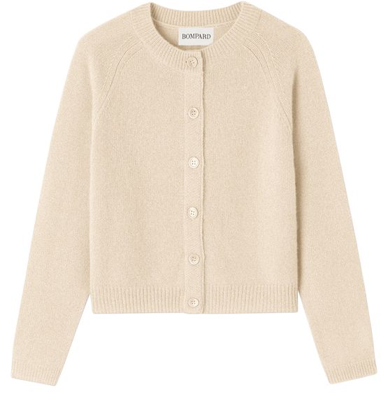 Découvrez le cardigan à manches raglan de Bompard, alliant style et confort. Doté d'une encolure ras du cou et d'une fermeture à bouton, ce modèle à coupe regular est confectionné en bords-côtes pour une texture élégante. Ses manches longues et sa coupe courte le rendent polyvalent pour toutes les occasions.
