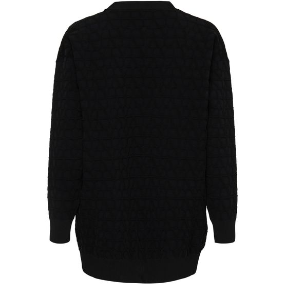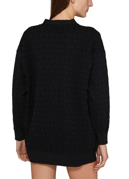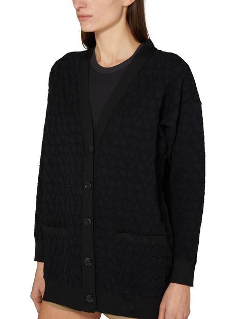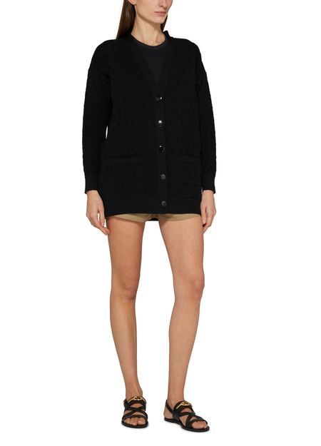 Le cardigan Toile Iconographe de Valentino se distingue par sa fermeture à bouton et ses boutons sur le devant, offrant une silhouette raffinée. Les manches longues apportent une touche d'élégance, tandis que l'étiquette avec logo à l'arrière souligne le savoir-faire de la marque, mêlant confort et style contemporain.