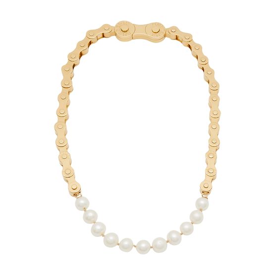 Entièrement conçu en laiton, ce collier au design très contrasté entre un style ultra contemporain et classique est une création originale de la maison Burberry.