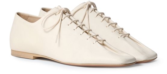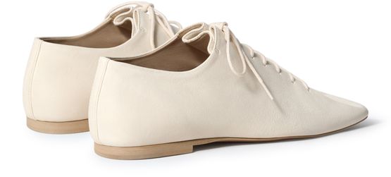 Découvrez les chaussures à lacets de Lemaire, confectionnées en cuir lisse avec un bout pointu fermé et de petits talons. La semelle très fine et la piqûre visible apportent une touche raffinée, tandis que le laçage et la bride assurent un maintien élégant. Parfaites pour une allure contemporaine.