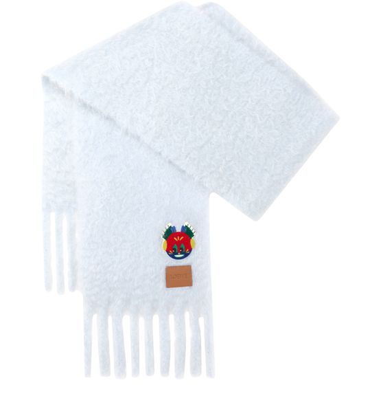 Écharpe en mohair et laine mélangés d'épaisseur moyenne, avec motif Futurist Cat tufté et lettrage brodé à l'arrière. Cette écharpe s’inspire de la série de vases en porcelaine « Futurist Cats » de Louis Wain.