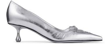 Découvrez les escarpins Scarlett 50 argentés de Jimmy Choo, une œuvre d'élégance. Confectionnés en cuir métallisé, ces escarpins présentent un bout pointu fermé et un talon aiguille élégant. La piqûre visible et les finitions argentées ajoutent une touche de sophistication, parfaits pour toute tenue élégante.