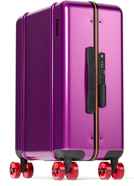• Description : Bagages, poignée unique, logo embossé, poche intérieure zippée, finitions métalliques, système de roues pivotantes 360° pour skateboard, cadre en aluminium, serrure TSA à 3 chiffres intégrée.