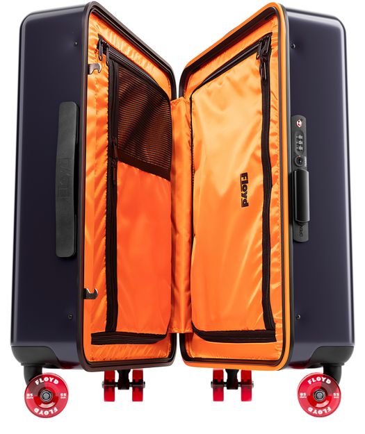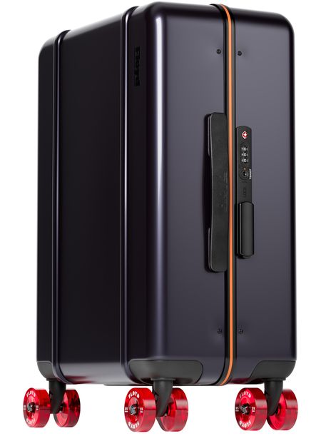 • Description : Bagages, poignée unique, logo embossé, poche intérieure zippée, finitions métalliques, système de roues pivotantes 360° pour skateboard, cadre en aluminium, serrure TSA à 3 chiffres intégrée.