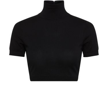 Le haut court Max Mara Aire à col roulé est un t-shirt court avec une encolure montante et des manches courtes. Il est doté d'une fermeture à glissière discrète pour un look élégant et moderne. Parfait pour une tenue décontractée et sophistiquée.