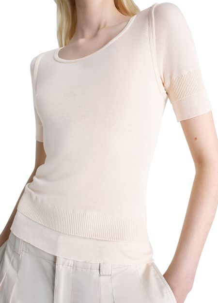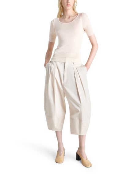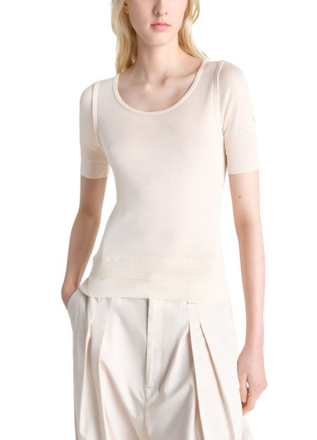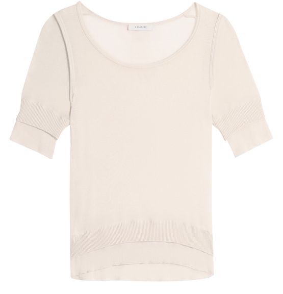 Découvrez le top à col rond et manches courtes de Lemaire, une pièce élégante qui séduit par sa simplicité moderne. Sa coupe épurée et ses finitions discrètes en font un choix polyvalent, idéal avec un pantalon ajusté ou un jean pour toutes les occasions.