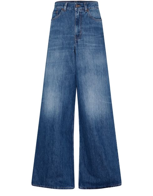 • Description : surpiqûre contrastée, passants pour ceinture, fermeture bouton et à glissière dissimulée, étiquette avec logo à l’arrière, logo à l'arrière, logo appliqué, style cinq poches, coupe évasée, longueur cheville.