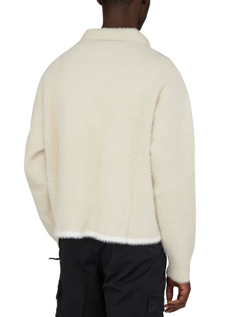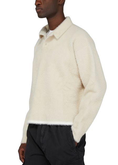 Le Polo Neve de Jacquemus est confectionné dans une matière chaude et confortable. Avec son col polo et ses bords côtes, il offre une coupe droite et large pour un look décontracté et élégant. Parfait pour les journées fraîches d'hiver.
