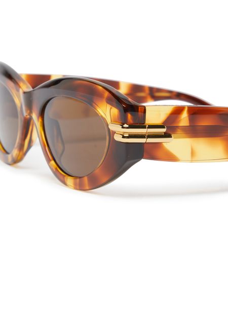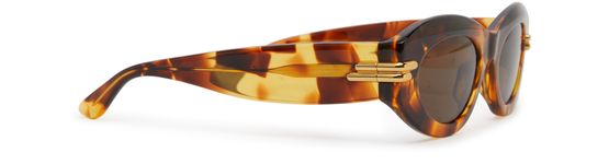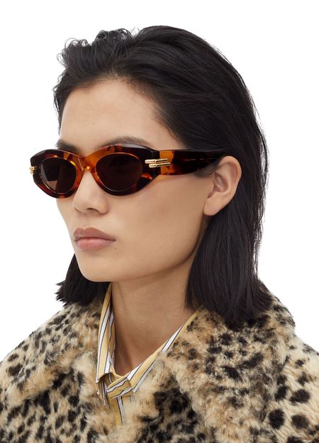 Les lunettes de soleil ovales Mitre de Bottega Veneta allient élégance et audace. Avec leurs finitions dorées et leurs branches épaisses, elles épousent parfaitement une forme ronde. Les verres colorés offrent une touche de mystère, transformant chaque regard en une invitation à explorer un monde de style et de raffinement.