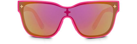• Description : Monture en nylon injecté rose, verres miroir orange, forme carrée, métal doré, fleurs de Monogram sur les extrémités, les branches et les embout, fleur de Monogram sur le pont.