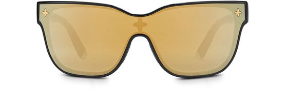 • Description : Monture injectée en nylon noir, verres miroir dorés, forme carrée, métal doré, fleurs de Monogram sur les extrémités, les branches et les embout, fleur de Monogram sur le pont.