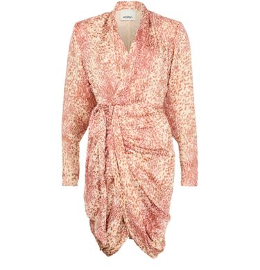 La mini robe Cleora d'Isabel Marant séduit par son imprimé all-over et son col en v flatteur. Les manches longues resserrées et les poignets boutonnés ajoutent une touche d'élégance. La fermeture à glissière au dos et le détail drapé soulignent la silhouette, tandis que la surpiqûre visible révèle un savoir-faire raffiné.