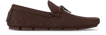 Ce mocassin LV Driver en cuir de veau nubuck présente une version embossée miniature du motif Monogram emblématique. Ce modèle dispose d'une empeigne cousue main et d’un montage tubulaire pour garantir la légèreté et la souplesse du soulier. Sa semelle extérieure est composée de larges coussinets en gomme ornés d'un motif inspiré des jardins français, comme celui des Tuileries.