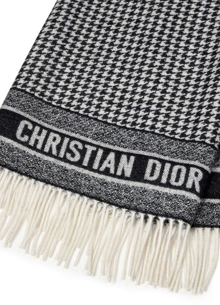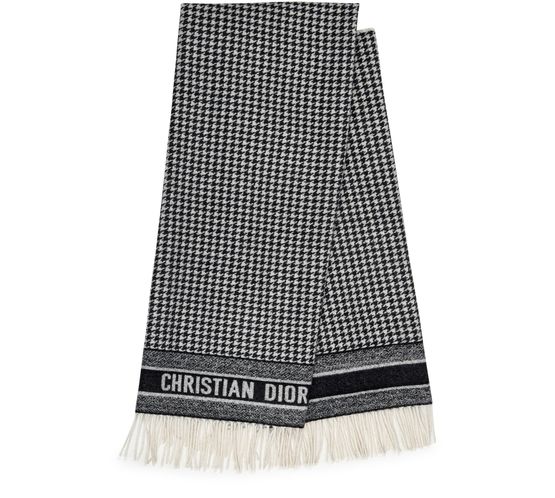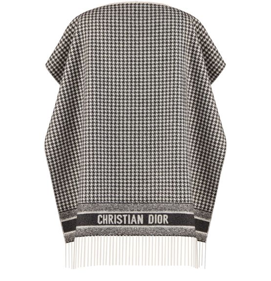 Inspirée par l'adresse historique de la Maison, la collection 30 Montaigne rassemble les pièces indispensables faisant écho aux codes de la Maison. Confectionné en cachemire de première qualité, ce poncho présente un motif pied-de-poule et une bordure contrastée portant la signature "Christian Dior " en lettres majuscules. Il se pose sur les épaules et sublimera jeans et pantalons ajustés.