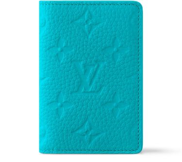 Cet organizer de poche se compose de cuir Taurillon grainé embossé Monogram. Le coloris turquoise audacieux confère une allure moderne à ce modèle classique. L'intérieur savamment conçu offre trois fentes pour les cartes et cinq poches. Une poche supplémentaire se trouve à l'extérieur. Cet accessoire compact se glisse dans la plupart des poches ou sacs.