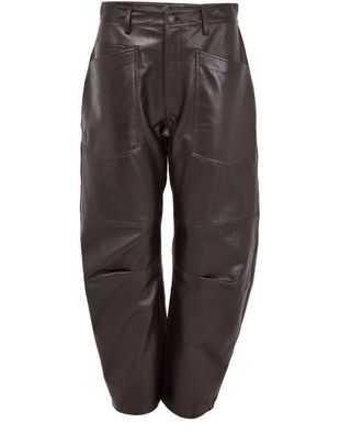 Découvrez le pantalon en cuir Shon Nili Lotan, confectionné en cuir lisse et doté d'une longueur cheville. Sa fermeture à glissière avec bouton, grande poche avant et poche plaquée à l'arrière offrent praticité et style. Les surpiqûres visibles et passants pour ceinture complètent ce modèle élégant et polyvalent.