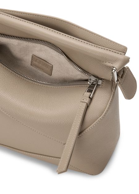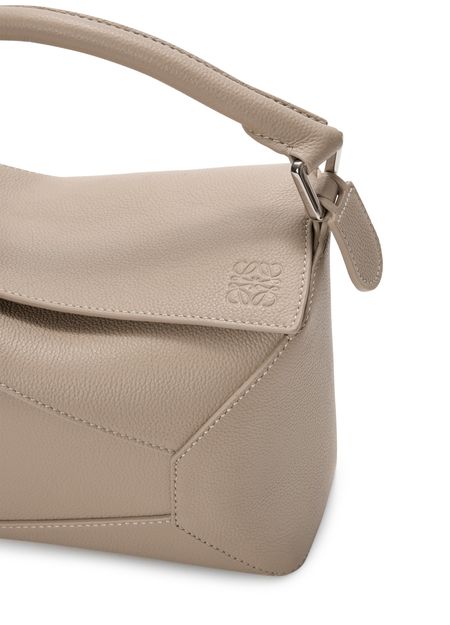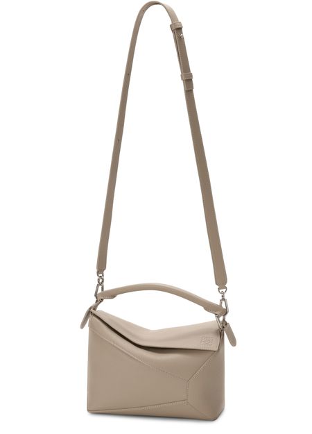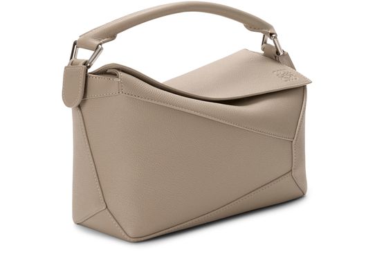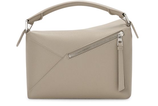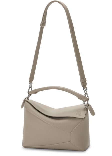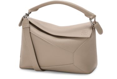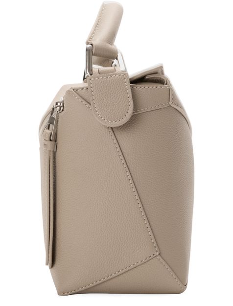 Découvrez le petit sac Puzzle Edge Loewe, confectionné en cuir grainé avec poignée unique et finitions métalliques. Les coutures apparentes et la fermeture à rabat soulignent le savoir-faire de la maison, offrant une pièce élégante et contemporaine à votre collection.