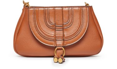 Le sac à bandoulière Chloé Marcie est fabriqué en cuir grainé de haute qualité avec une fermeture à glissière et un compartiment unique. Il est orné d'un logo estampé et de coutures visibles, avec une finition dorée pour une touche de sophistication. Portez-le sur l'épaule pour un look élégant et pratique.