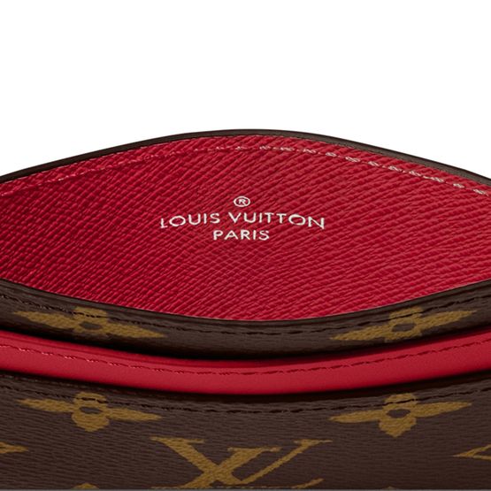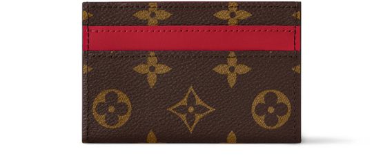 Ce porte-cartes double revêt la toile Monogram Macassar emblématique de la Maison. Une bande colorée en cuir de vache et une doublure assortie lui prêtent une note ludique. Quatre fentes pour les cartes et une poche centrale permettent de ranger les cartes de crédit, de transport et de visite.