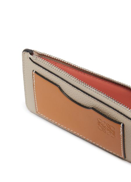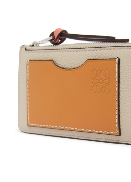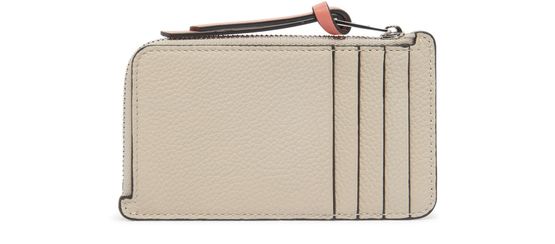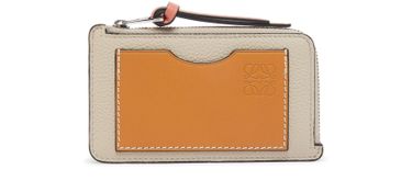 Découvrez le porte-cartes et monnaie en cuir de veau grainé souple Loewe, orné du médaillon Anagram emblématique. Sa texture capitonnée raffinée, ses coutures apparentes et sa fermeture à glissière assurent élégance et fonctionnalité, tandis que le logo embossé signe une allure contemporaine.