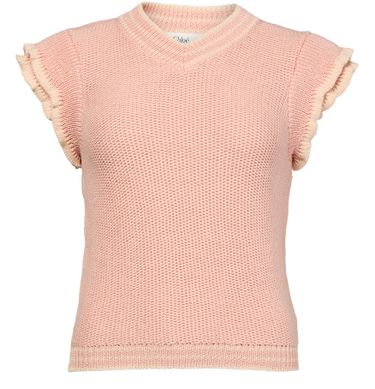 Le pull en maille de laine ruchée de Chloé incarne le chic intemporel. Avec ses manches courtes et son col en v, il allie confort et élégance. Ce classique revisité se porte aussi bien en journée qu'en soirée, offrant une silhouette raffinée qui séduira toutes les amatrices de mode.