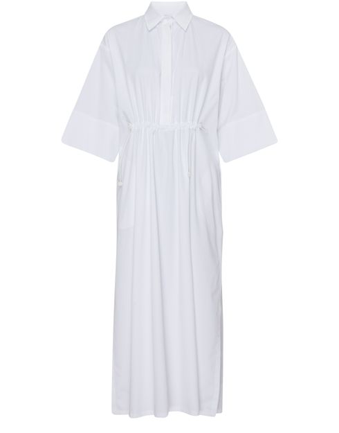 La robe chemise midi Eulalia de Max Mara est un vêtement élégant et polyvalent pour toutes les occasions. Avec des manches courtes et un col de chemise classique, cette robe présente une fermeture dissimulée et une taille ajustable par cordon coulissant pour un ajustement parfait. L'étiquette avec logo à l'arrière ajoute une touche de sophistication discrète.