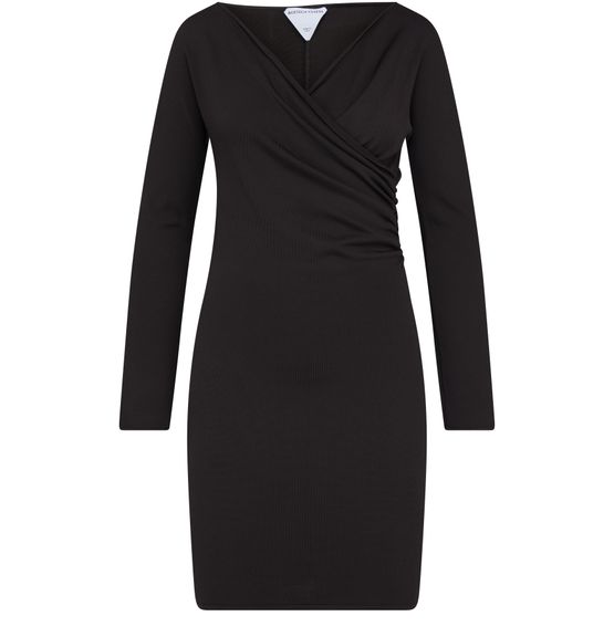 Cette robe courte Bottega Veneta est coupée slim et dotée d'un col en V flatteur et de manches longues élégantes. Sa taille est soulignée pour une silhouette flatteuse, et des détails de plis viennent ajouter une touche de sophistication. Parfaite pour toute occasion, cette robe est un incontournable de garde-robe.