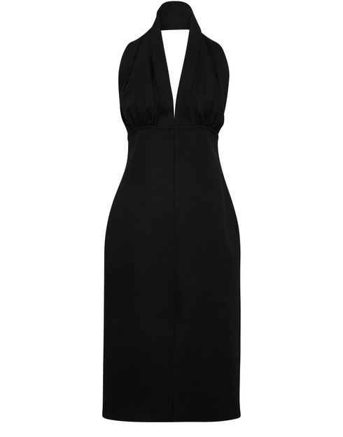 La robe dos-nu en coton Bottega Veneta présente une longueur midi et un décolleté plongeant, sans manches, avec une taille empire et des détails de fronces. Les coutures apparentes ajoutent une touche de modernité à cette pièce élégante et intemporelle, parfaite pour toutes les occasions.