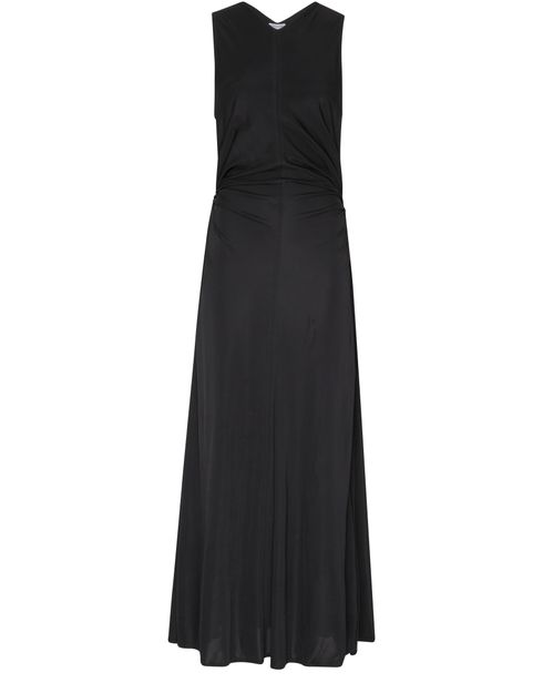 La robe longue à taille froncée de Bottega Veneta est un choix élégant pour toute occasion. Elle comporte une étiquette avec le logo à l'arrière, sans manches et un col en V flatteur. Fabriqué avec des matériaux de haute qualité, cette robe est un ajout intemporel à votre garde-robe.
