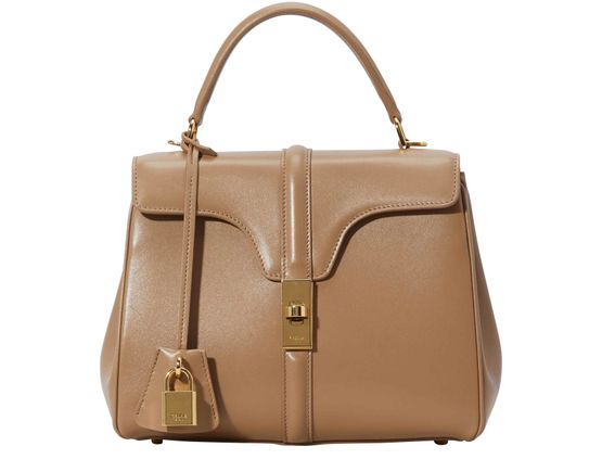 Le sac 16 petit modèle de Celine veau satiné incarne l'élégance moderne. Avec son porté main, épaule et croisé, il s’ouvre sur un intérieur astucieux avec deux compartiments, une poche centrale zippée et une poche plate. Son tourniquet métallique et sa bandoulière en cuir amovible ajoutent une touche de sophistication.