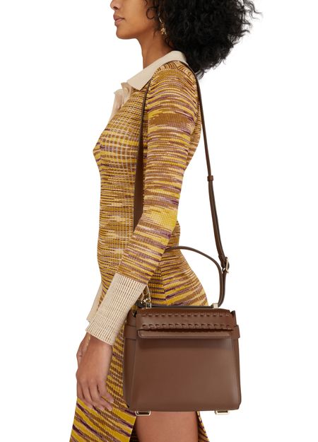 Le sac à main Chloé Nacha est un accessoire élégant et pratique. Il dispose d'une bandoulière détachable et d'une poignée amovible pour un transport facile. La fermeture à rabat est sécurisée par un mousqueton et le logo Chloé est embossé sur le devant. Les finitions métalliques et les surpiqûres visibles ajoutent une touche de sophistication.