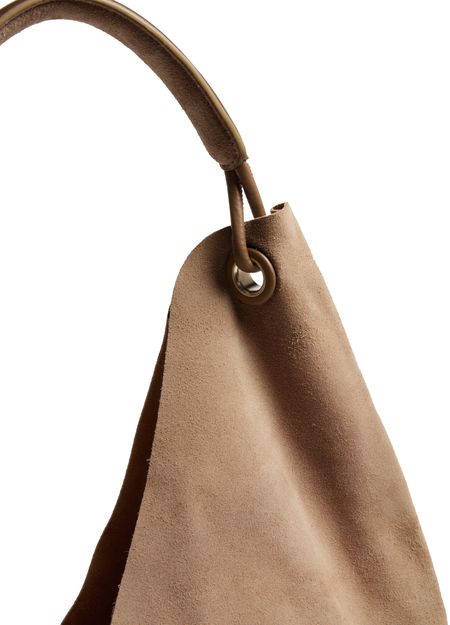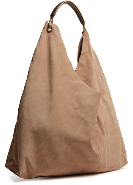 Découvrez le sac Bindle Three en cuir velours de The Row. Ce cabas élégant est conçu avec une poignée unique et un grand compartiment intérieur. Le cuir velours raffiné incarne l'élégance, en faisant un compagnon idéal pour toute aventure stylée.