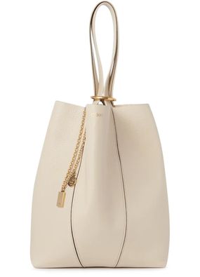 Découvrez le sac cabas en cuir grainé Chloe Spin, signé Chloe. Ce modèle séduit par ses charms en métal doré suspendus à une chaînette, son logo à l'avant en lettres dorées et ses coutures apparentes. Son grand compartiment intérieur et sa poignée double allient élégance et fonctionnalité.