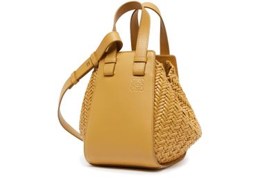 Le sac Hammock compact tissé de Loewe est un accessoire polyvalent avec une bandoulière fine amovible pour un porté main ou épaule. Doté d'un mousqueton et d'un compartiment unique, il est parfait pour transporter vos essentiels avec style. Ses finitions dorées ajoutent une touche d'élégance à votre tenue.