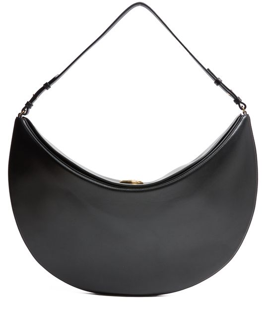 • Description : Sac hobo, sac porté épaule, bandoulière fine, rabat aimanté à faux bouton-pression logo XXL, cuir lisse, fermoir aimanté, poche intérieure zippée, surpiqûres apparentes.