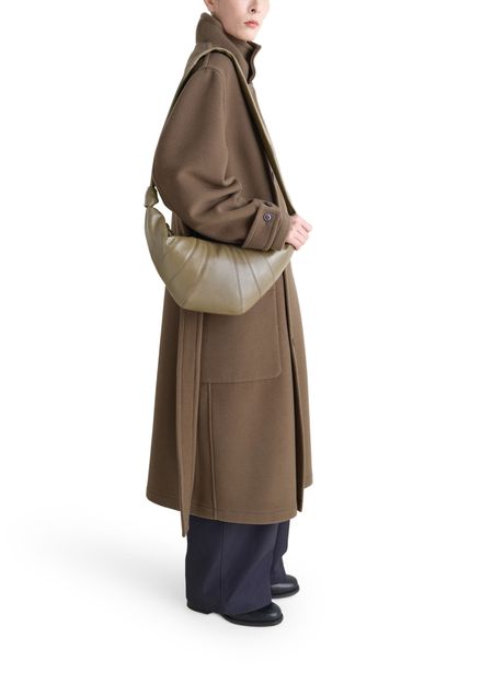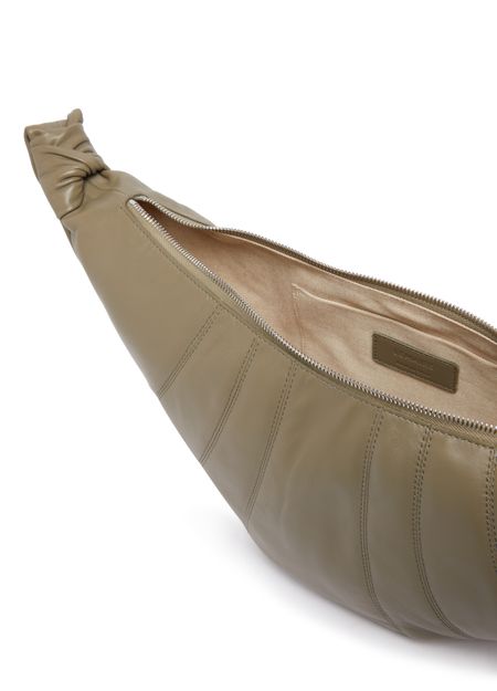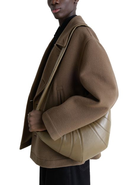 Découvrez le sac porté épaule en cuir lisse de Lemaire, doté d'une poignée unique et d'une texture capitonnée. Les coutures apparentes et la fermeture à glissière soulignent une allure sophistiquée, idéale pour sublimer toutes vos tenues contemporaines.