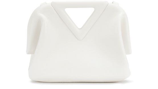 C'est dans un petit format irrésistible que le sac Point petit format revient sur le devant de la scène. On retrouve avec plaisir la fermeture à cadre magnétique qui est devenue incontestablement la signature de Bottega Veneta. Surtout, on cède sans hésitation à sa poignet triangulaire en cuir qui lui confère une allure inimitable. Sans conteste, un must à adopter.