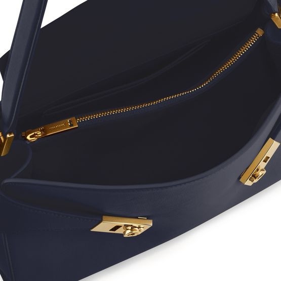 Découvrez le sac porté épaule Hug Salvatore Ferragamo, confectionné en cuir lisse avec poignée unique et bandoulière fine amovible. Un fermoir doré, des finitions dorées et un logo à l'avant soulignent l’élégance, tandis que les coutures apparentes et la poche intérieure zippée offrent une touche pratique.