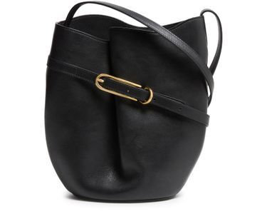 • Description : Bucket bag, bandoulière fine, bandoulière ajustable, cuir lisse, fermeture boutons-pression, poche intérieure zippée, surpiqûres apparentes, finitions dorées.