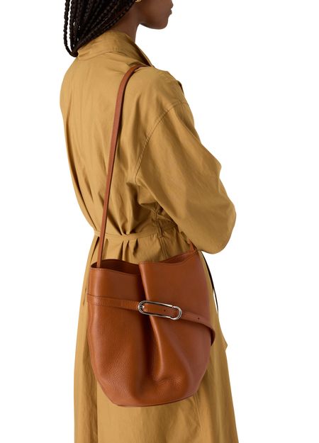 Découvrez le sac seau ceinturé de Liffner, confectionné en cuir lisse avec une poignée unique pour une allure contemporaine. Les coutures apparentes et les finitions métalliques soulignent le savoir-faire, offrant un sac porté épaule à l’élégance discrète et actuelle.