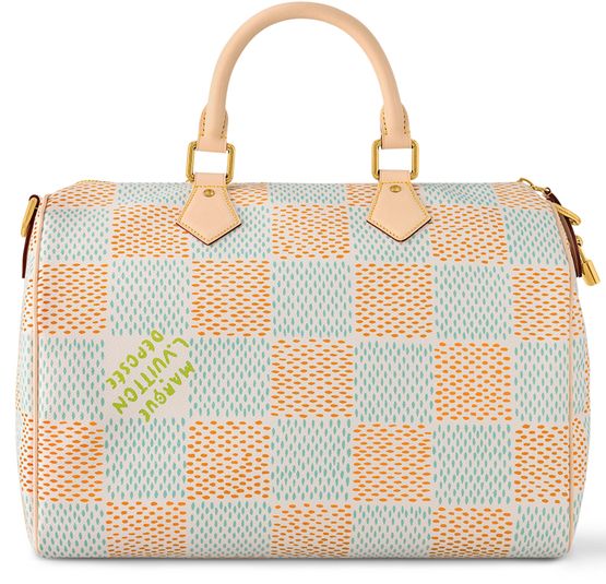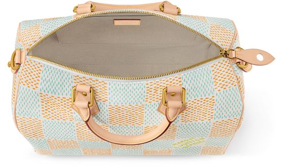 Ce sac Speedy Bandoulière 40 s'habille de toile Damier Heritage, nouvelle réinterprétation du motif emblématique par Pharrell Williams. La garniture en cuir de vache, y compris les poignées supérieures, les supports de poignées et le porte-adresse, répondent aux codes classiques de la Maison. Ce modèle peut se porter de multiples façons grâce aux poignées ainsi qu'à la bandoulière ajustable et amovible.