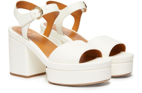 Les sandales compensées Chloé Odina sont des escarpins élégants avec bout rond ouvert et plateforme. Elles sont dotées d'une bride cheville à boucle et d'un talon carré pour un look moderne et sophistiqué. Parfaites pour ajouter une touche de style à vos tenues estivales.
