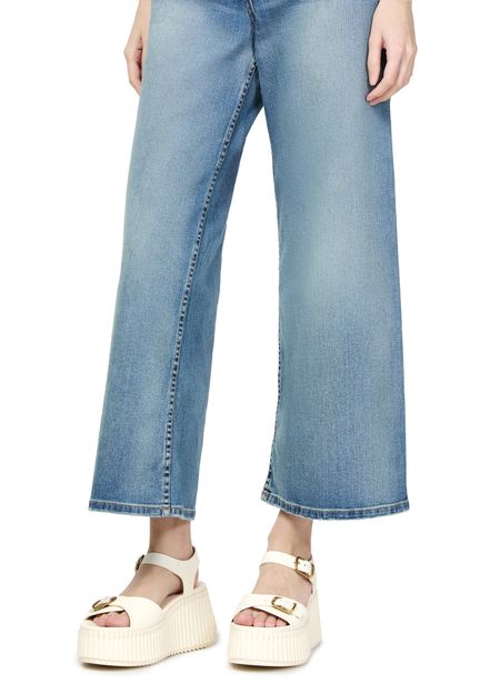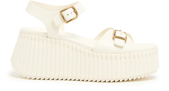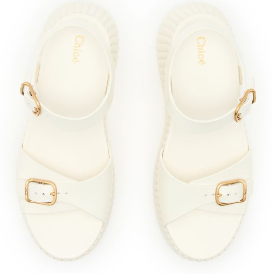Les sandales Nama de Chloé allient confort et élégance. Avec leur bout rond ouvert et leurs talons plats, elles offrent une allure décontractée. Les finitions dorées et le logo imprimé ajoutent une touche de luxe, tandis que la semelle intérieure à logo assure un confort optimal. Une piqûre visible souligne le savoir-faire.