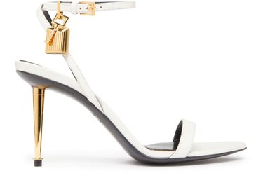 Les sandales Padlock de Tom Ford sont dotées d'un bout pointu et d'une forme affinée, avec une bride cheville à boucle et le logo gravé, symbole de la maison. Les finitions métalliques apportent une touche d'élégance, complétée par une semelle intérieure à logo et un talon stiletto.