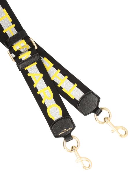 Cet accessoire signé Marc Jacobs révèle un imprimé contrasté qui booste le look ! Avec ce modèle de sangle en toile, le créateur mise sur des finitions audacieuses.