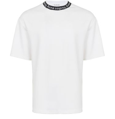 Acné Studios s'empare du look sportswear avec ce T-shirt aux manches mi-longues décoré d'une bande signature sur le col. Ce détail moderne contraste avec la sobriété de la pièce.