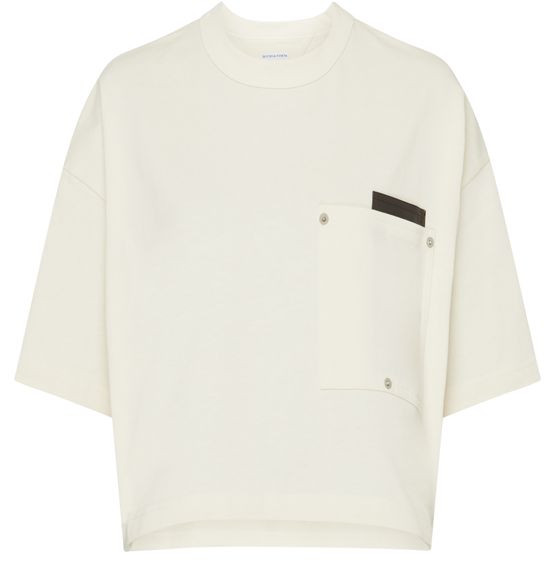 Le t-shirt oversize de Bottega Veneta incarne le chic décontracté. Avec ses manches courtes et son encolure ras du cou, il offre une silhouette classique. L’étiquette avec logo à l’arrière souligne l’authenticité de la marque, faisant de ce t-shirt un incontournable pour ceux qui recherchent élégance et confort au quotidien.