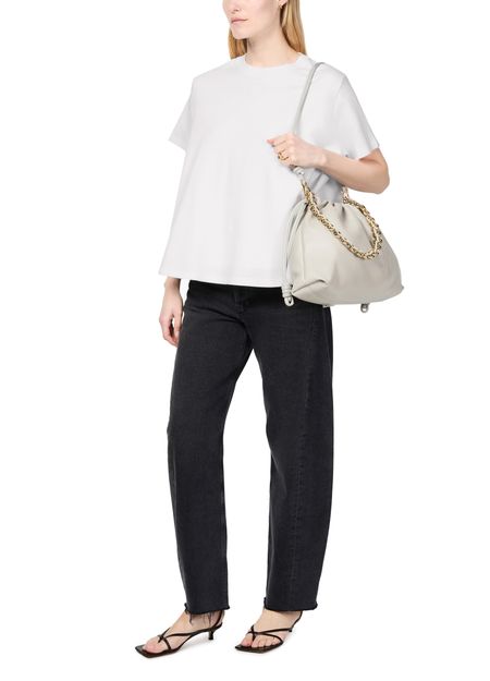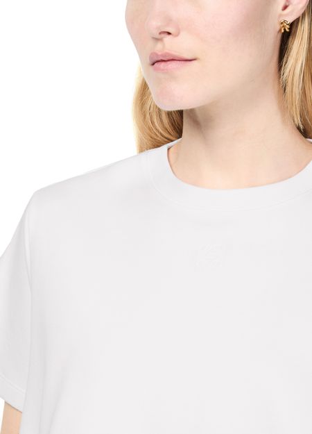 Le t-shirt trapèze Loewe incarne l'élégance intemporelle avec ses manches courtes et son encolure ras du cou. Le logo appliqué souligne son caractère classique, tandis que la surpiqûre visible et les manches évasées ajoutent une touche contemporaine. Un incontournable pour toute garde-robe, mêlant confort et style.