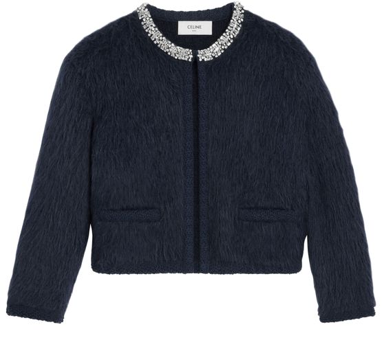 La veste cardigan brodée de Celine incarne l'élégance intemporelle. Avec sa broderie bijoux à l'encolure et son col rond, elle se porte de manière classique. Ses deux poches passepoilées et ses finitions galons tressés ajoutent une touche raffinée. Fabriquée en Italie, cette pièce est un incontournable du dressing chic.