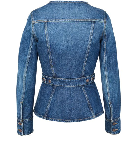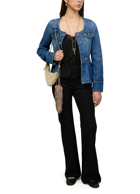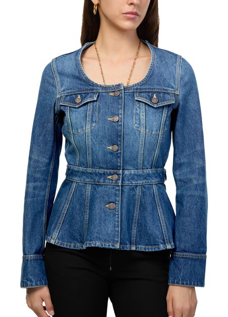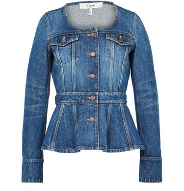 Découvrez la veste en denim de Chloe, une interprétation moderne du style camionneur classique. Ce modèle court et sans col, avec fermeture à bouton et manches longues, offre une silhouette élégante. Confectionnée en denim de qualité, elle se distingue par ses bords surpiqués et ses deux poches plaquées sur la poitrine.